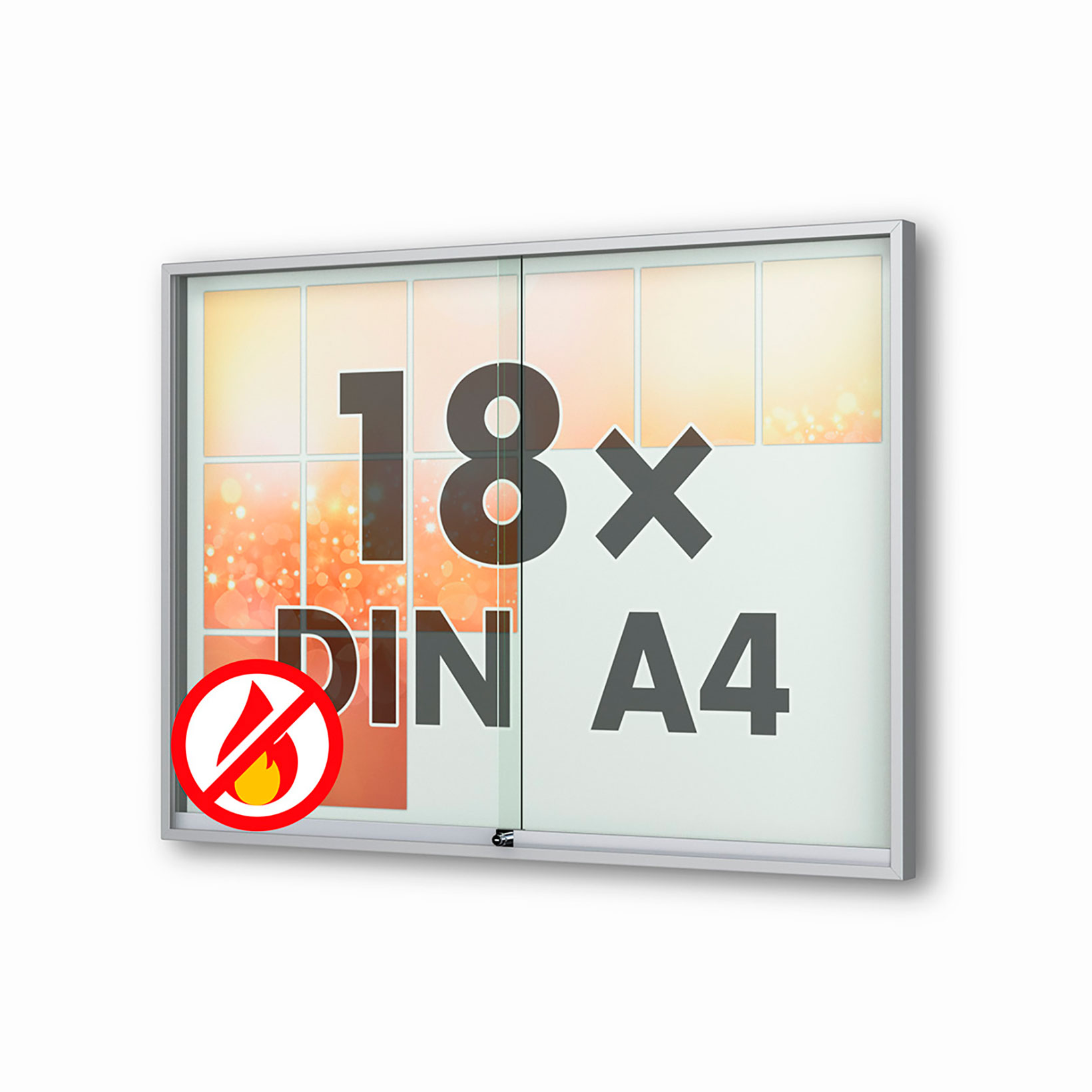 Plakatvitrine: | Brandschutz, Montageort: Innen, Wandmontage, abschliessbar, mit Schiebetüren |