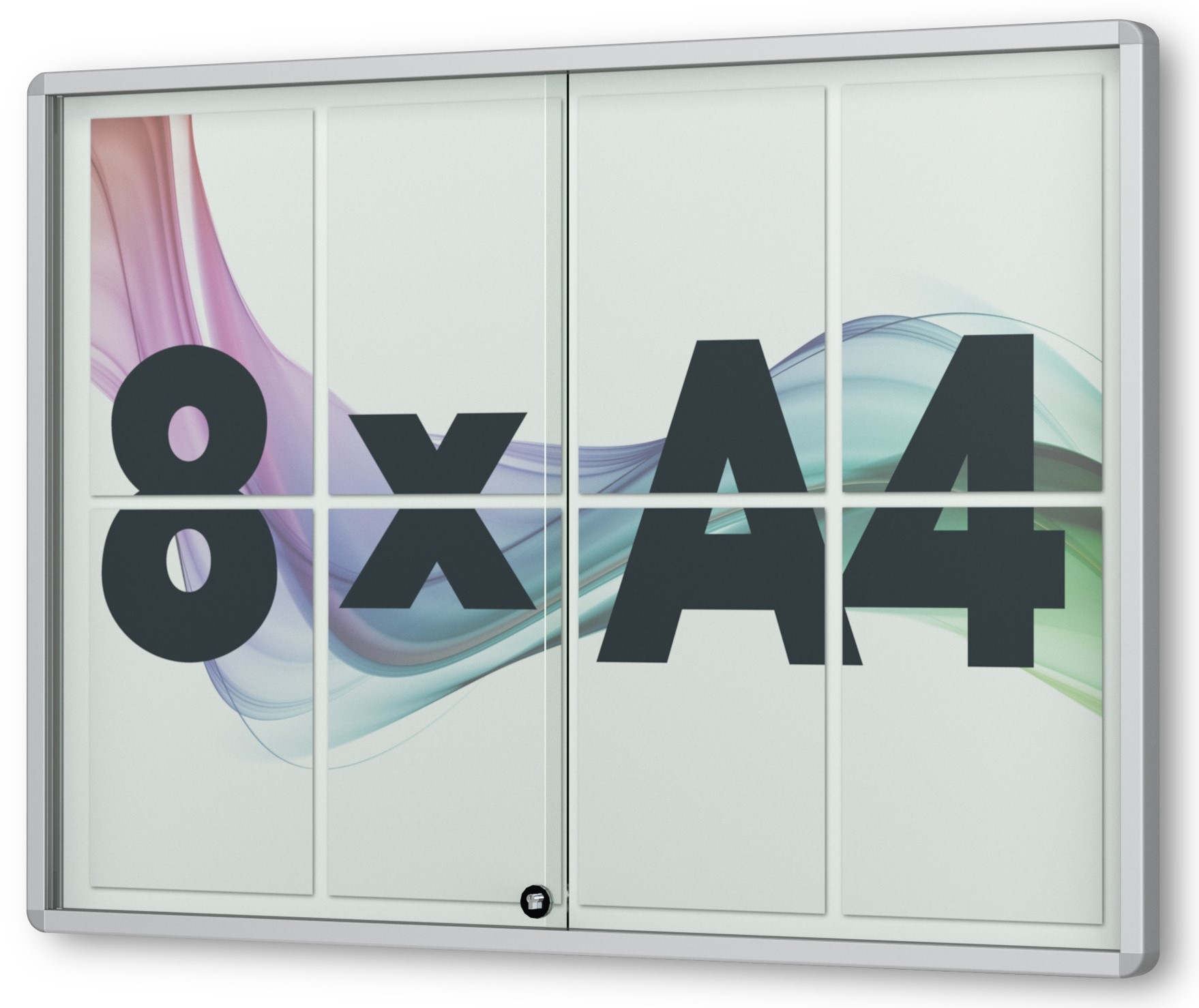Größe: Flachschaukasten Nexus mit Schiebetüren: 8 × DIN A4 • 925 × 665 mm B/H, 12 × DIN A4 • 925 × 975 mm B/H, 18 × DIN A4 • 1365 × 975 mm B/H