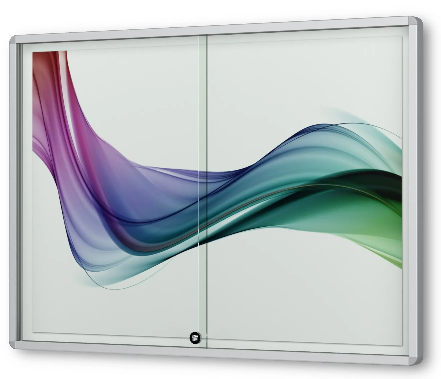 | Größe: Flachschaukasten Nexus mit Schiebetüren: | 8 × DIN A4 • 925 × 665 mm B/H, 12 × DIN A4 • 925 × 975 mm B/H, 18 × DIN A4 • 1365 × 975 mm B/H |